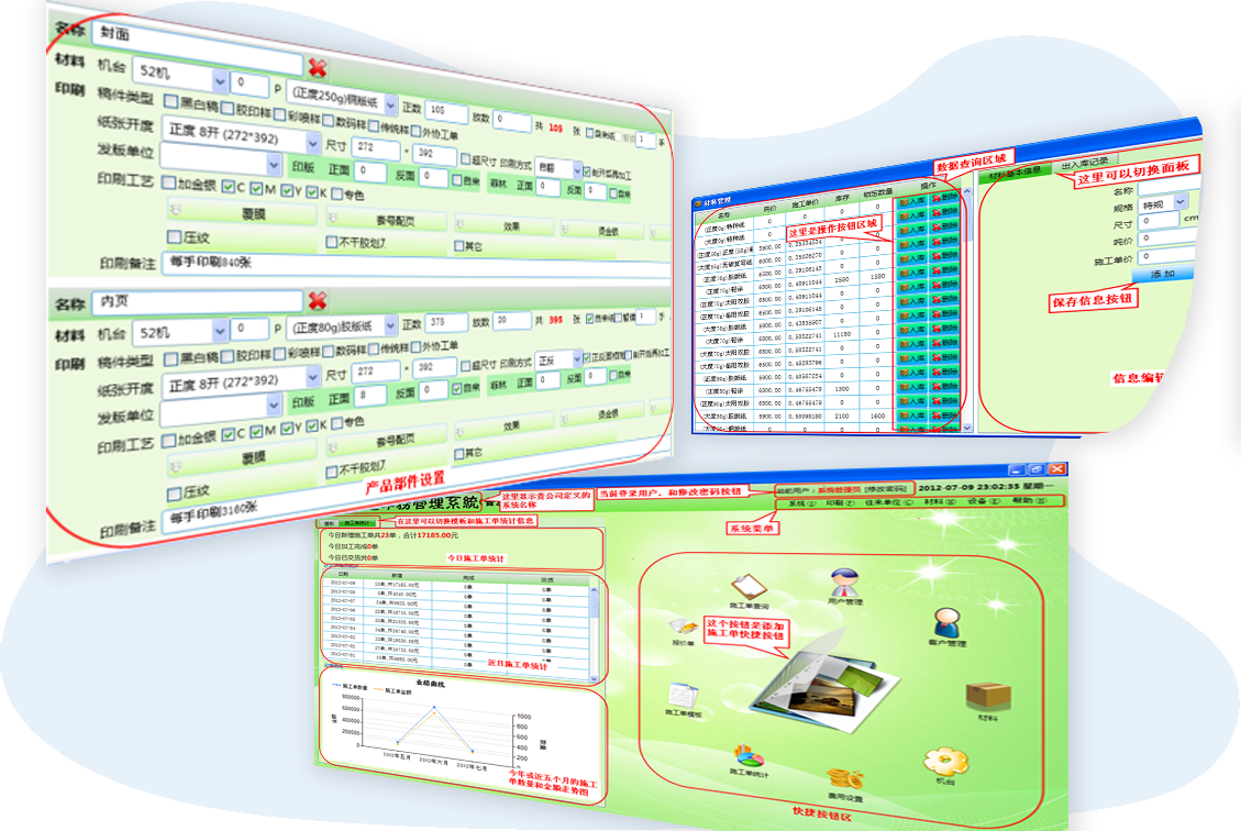 • 印刷全流功能覆蓋,包括客戶管理、報(bào)價(jià)單、印刷單生成。